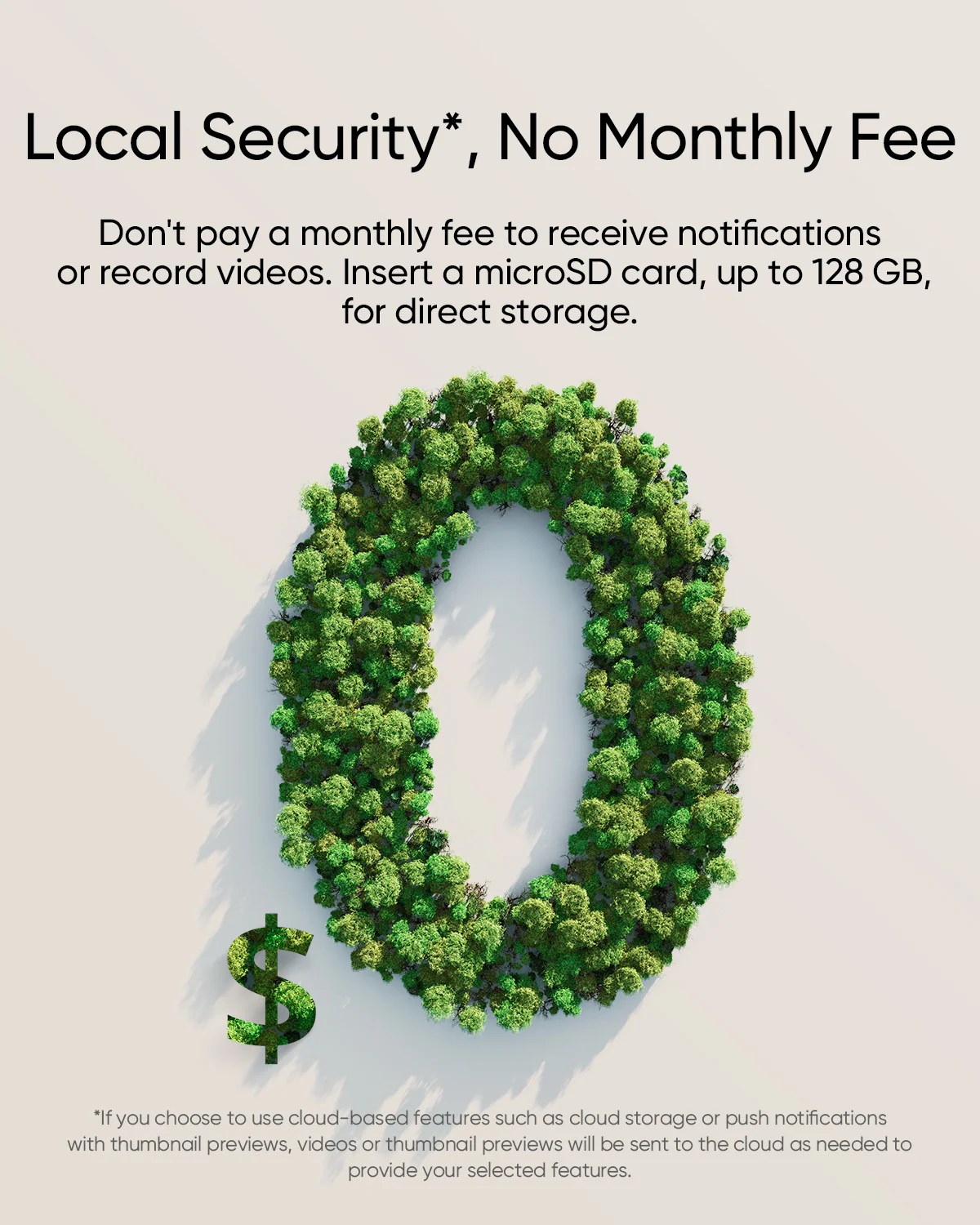 • Local Security, No Monthly Fee: Don't pay a monthly fee to receive notifications or record videos. Insert a microSD card, up to 128 GB, for direct storage.