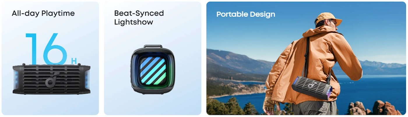 portable speaker. - Smart Features and 16H Playtime: Get 16 hours of nonstop play and full control via app. Comes